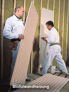 • Modul-Wandheizung für den Trockenbau: für Holzriegelbau, Fertighausbau, Dachgeschoss etc., Heizung und fertige Wand in einem, flexibles Platten-System, schnelle Erwärmung